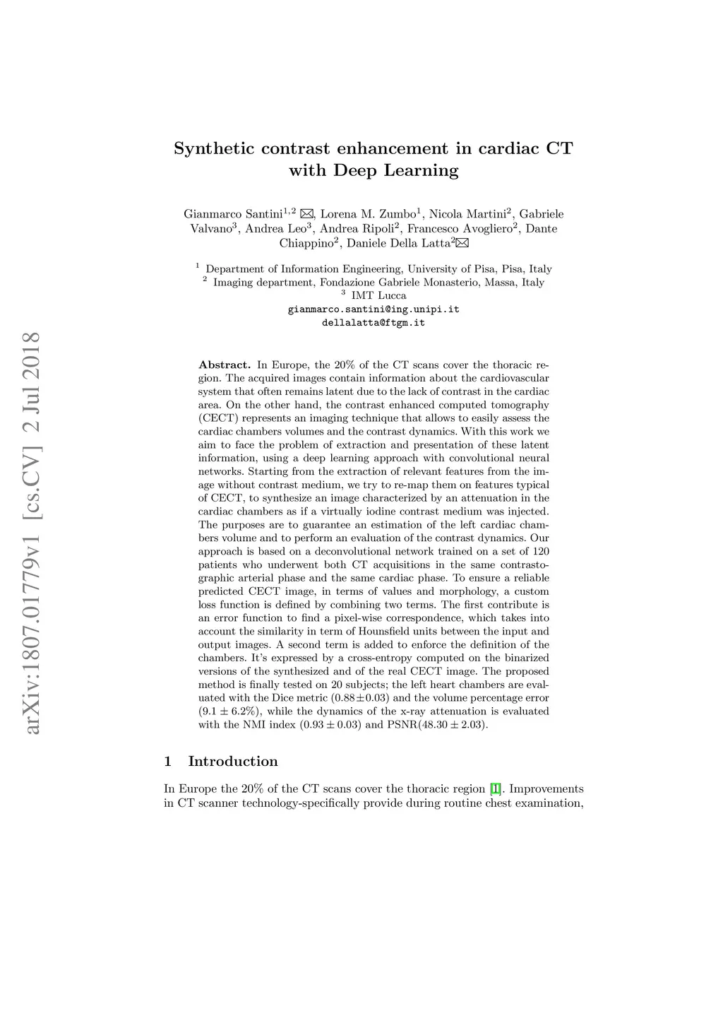 Synthetic contrast enhancement in cardiac CT with Deep Learning