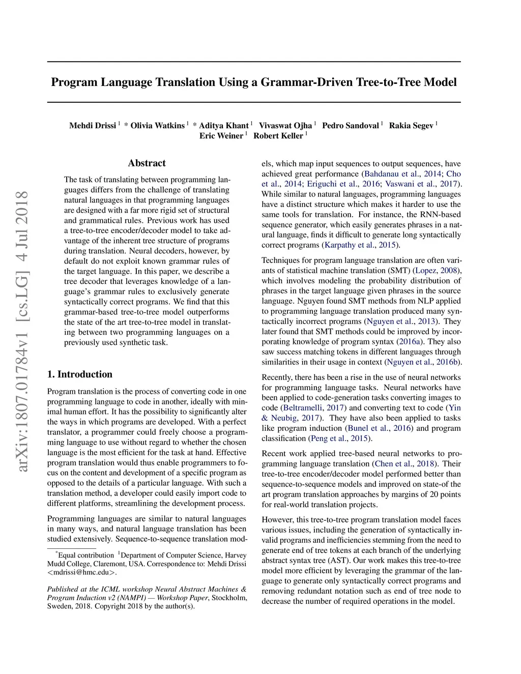 Program Language Translation Using a Grammar-Driven Tree-to-Tree Model