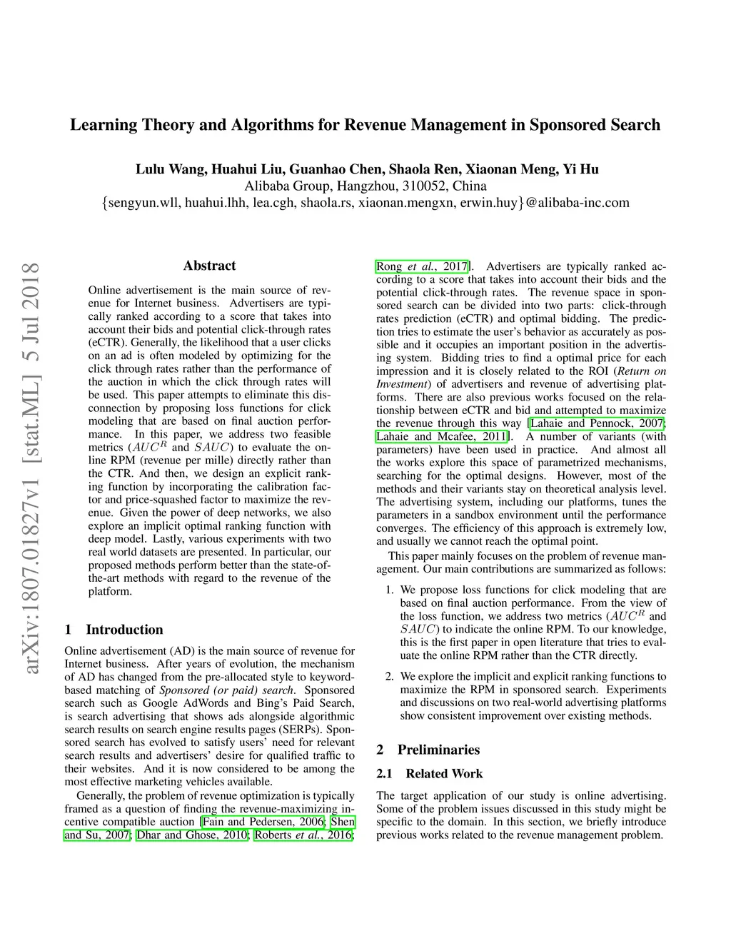 Learning Theory and Algorithms for Revenue Management in Sponsored