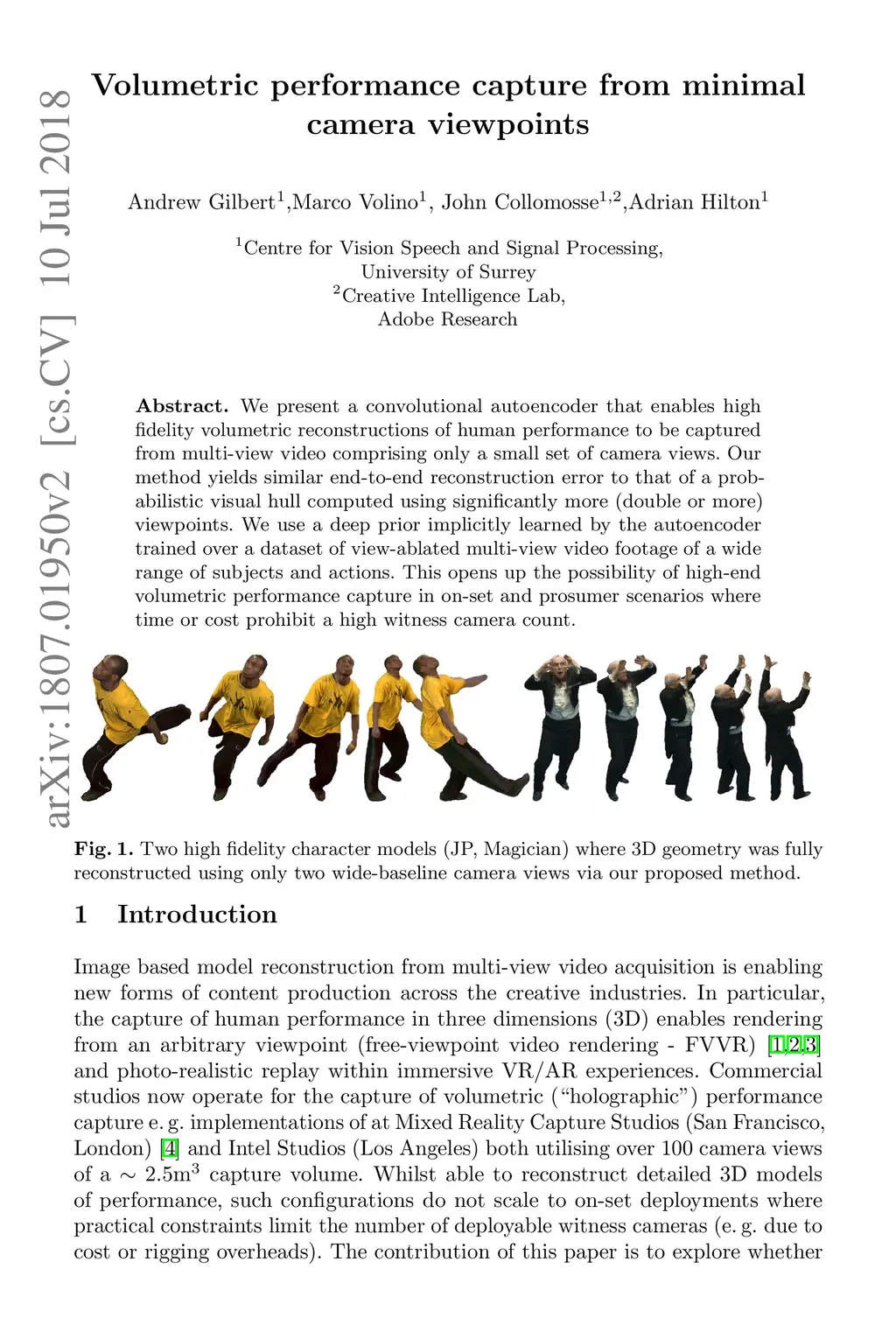 Volumetric performance capture from minimal camera viewpoints