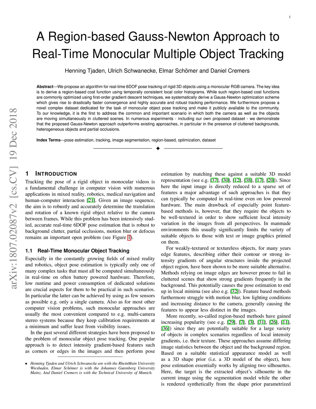 A Region-based Gauss-Newton Approach to Real-Time Monocular Multiple