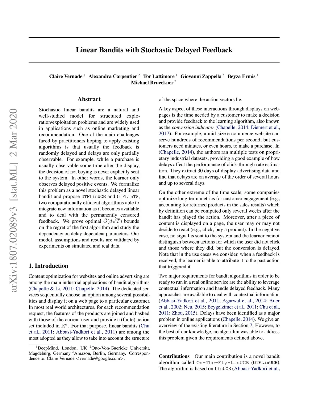 Stochastic linear bandits are a natural and well-studied model for structured exploration/exploitation problems and are widely used in applications such as online marketing and recommendation. One of the main challenges faced by practitioners hoping to apply existing algorithms is that usually the feedback is randomly delayed and delays are only partially observable. For example, while a purchase is usually observable some time after the display, the decision of not buying is never explicitly sent to the system. In other words, the learner only observes delayed positive events. We formalize this problem as a novel stochastic delayed linear bandit and propose and , two computationally efficient algorithms able to integrate new information as it becomes available and to deal with the permanently censored feedback. We prove optimal bounds on the regret of the first algorithm and study the dependency on delay-dependent parameters. Our model, assumptions and results are validated by experiments on simulated and real data.