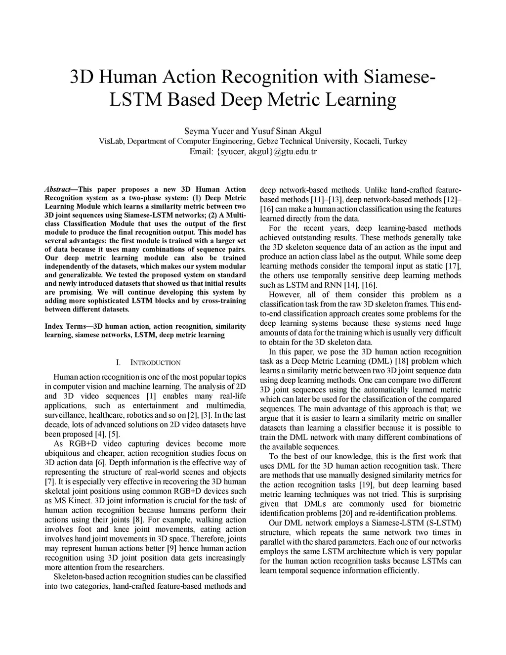 3D Human Action Recognition with Siamese-LSTM Based Deep Metric Learning