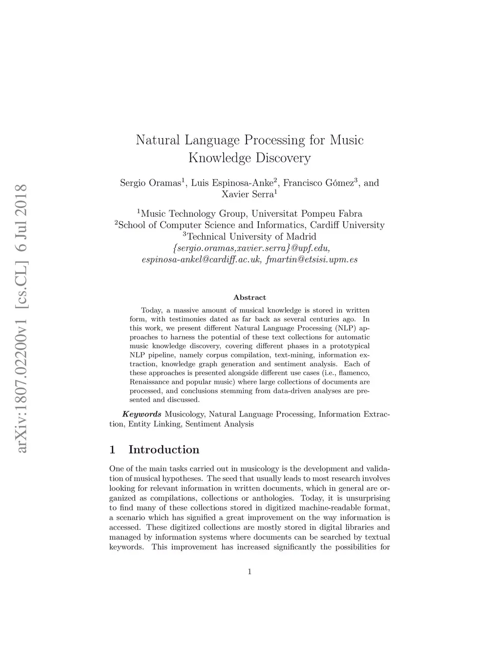 Today, a massive amount of musical knowledge is stored in written form, with testimonies dated as far back as several centuries ago. In this work, we present different Natural Language Processing (NLP) approaches to harness the potential of these text collections for automatic music knowledge discovery, covering different phases in a prototypical NLP pipeline, namely corpus compilation, text-mining, information extraction, knowledge graph generation and sentiment analysis. Each of these approaches is presented alongside different use cases (i.e., flamenco, Renaissance and popular music) where large collections of documents are processed, and conclusions stemming from data-driven analyses are presented and discussed.