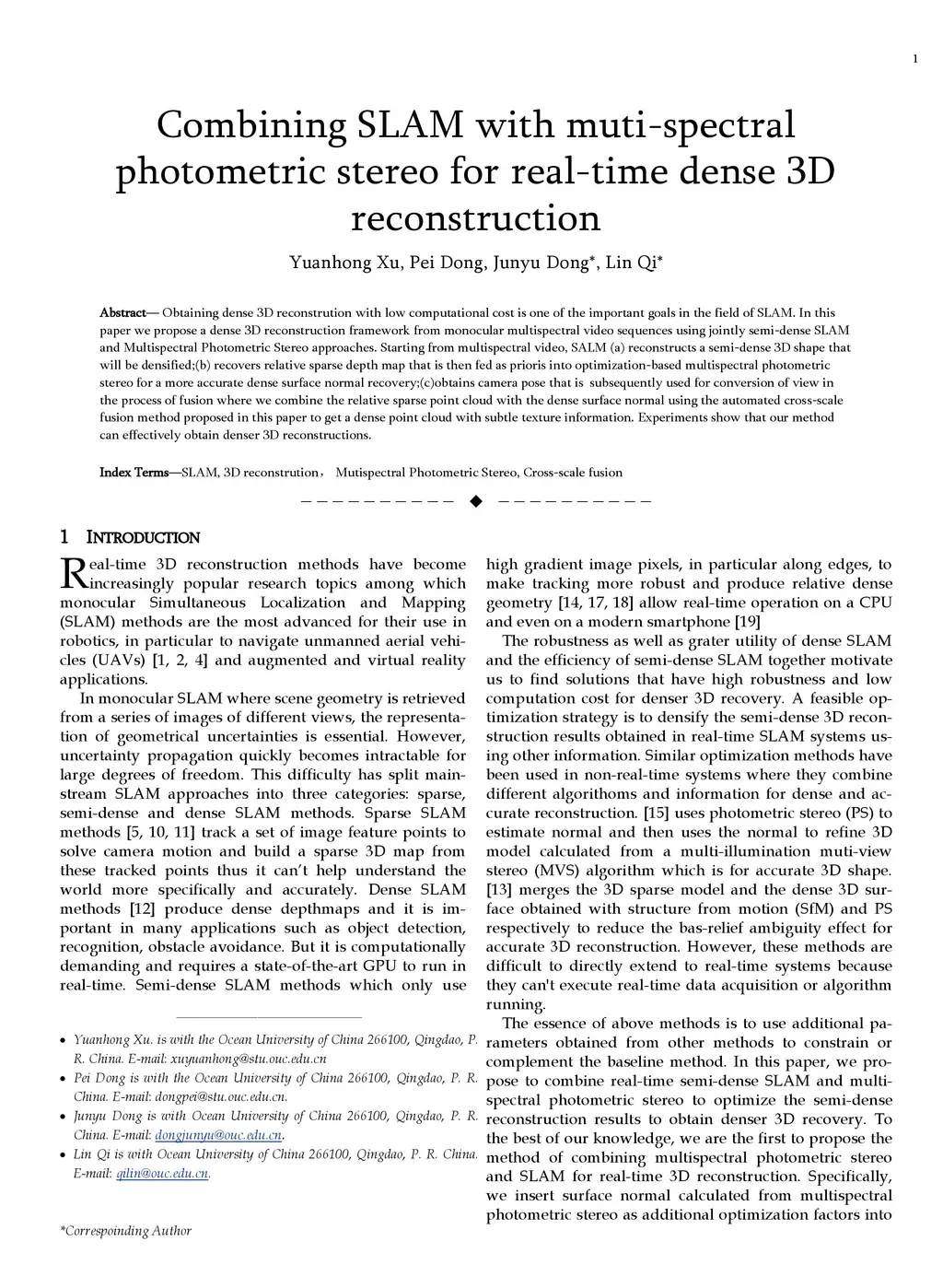 Combining SLAM with muti-spectral photometric stereo for real-time dense