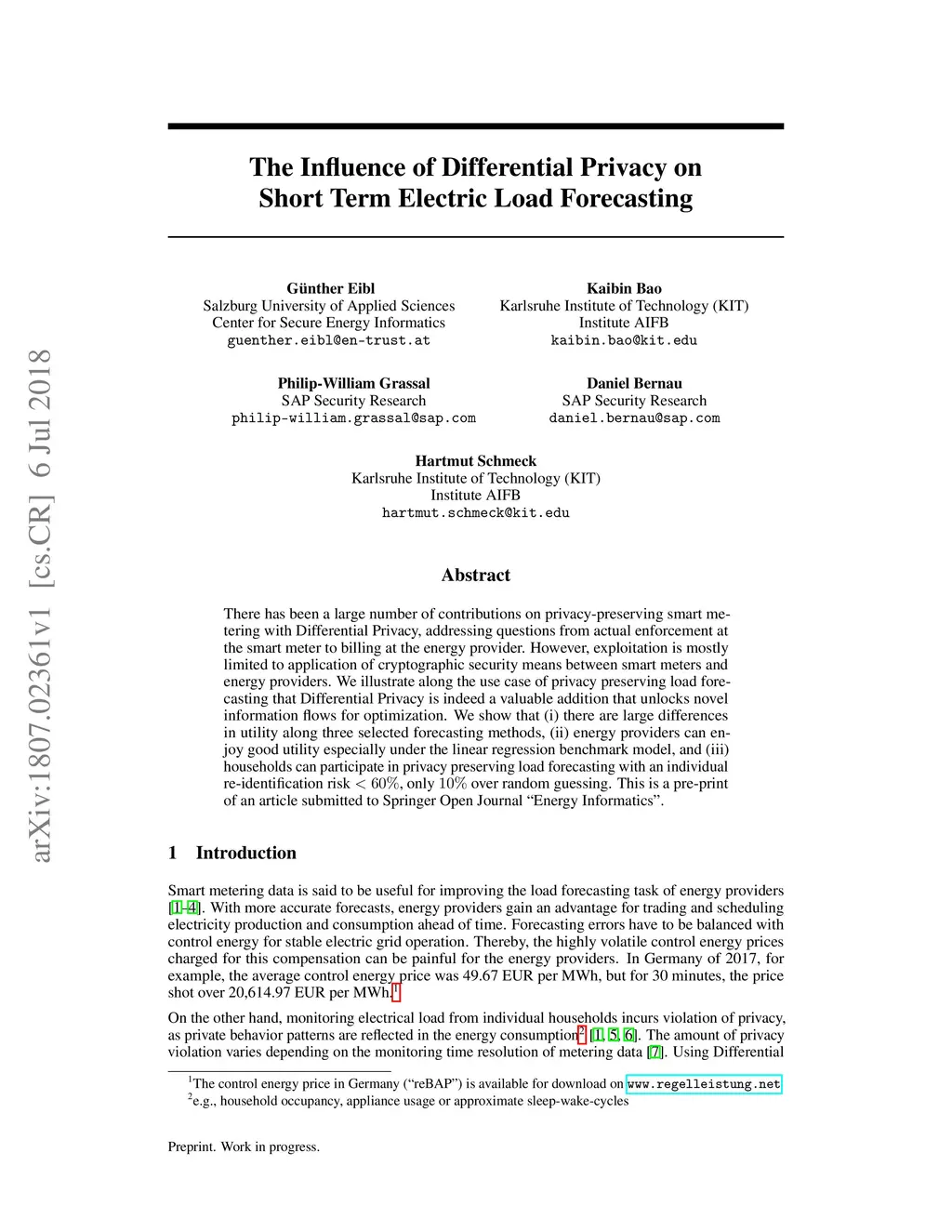 The Influence of Differential Privacy on Short Term Electric Load