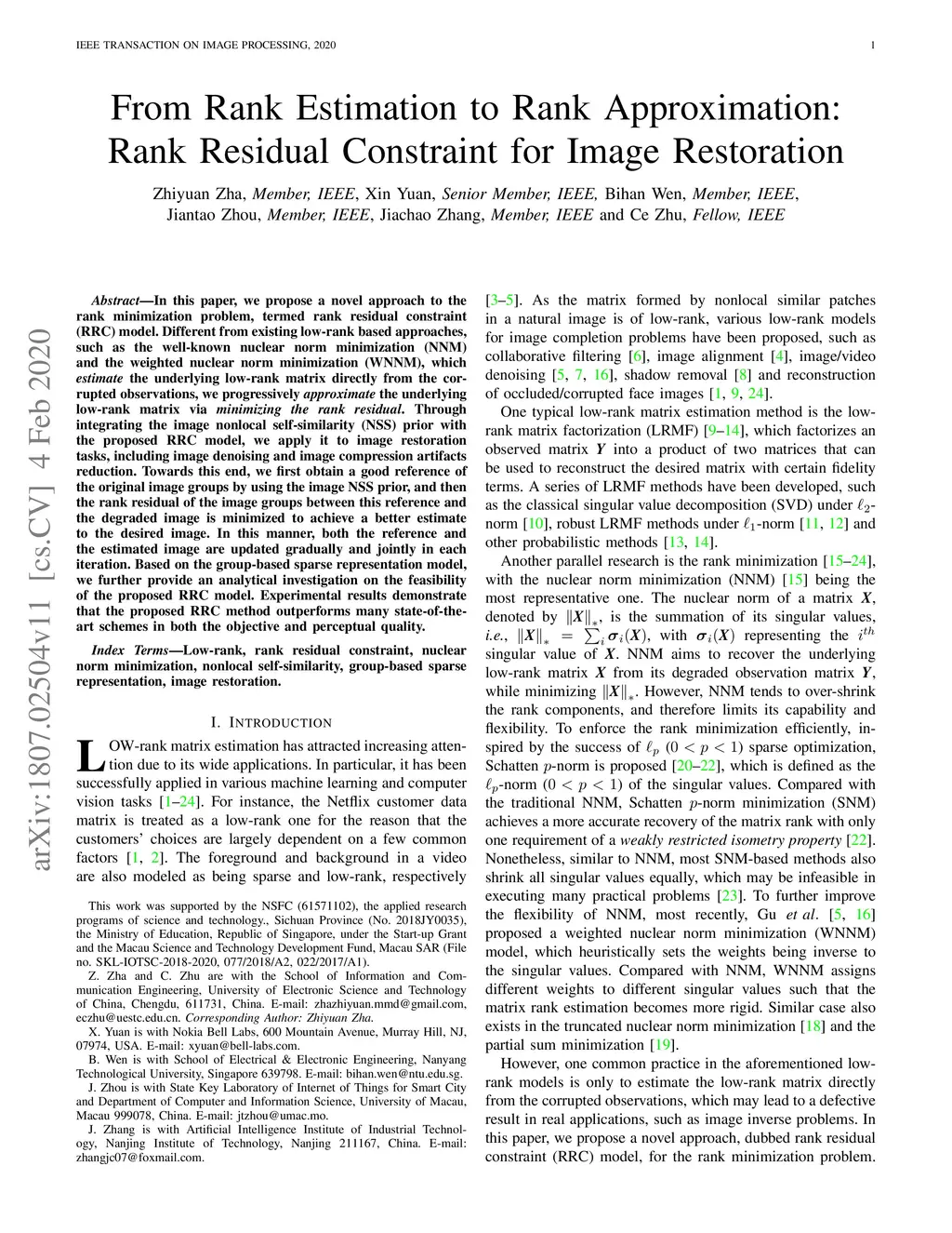 From Rank Estimation to Rank Approximation: Rank Residual Constraint for