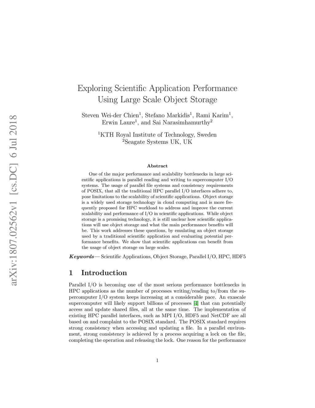 Exploring Scientific Application Performance Using Large Scale Object