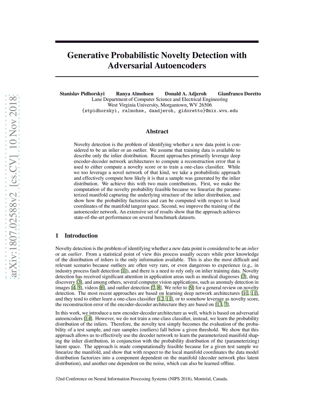 Generative Probabilistic Novelty Detection with Adversarial Autoencoders