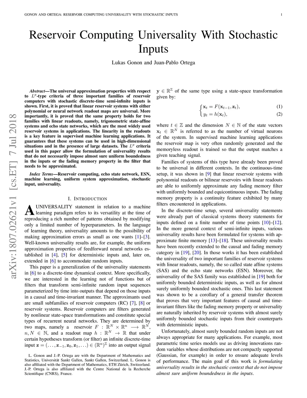 Reservoir Computing Universality With Stochastic Inputs
