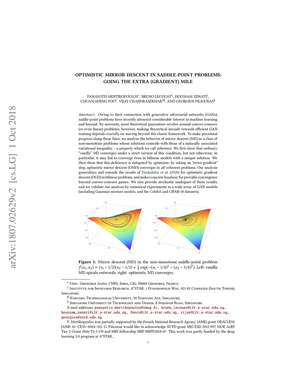 Optimistic mirror descent in saddle-point problems: Going the extra