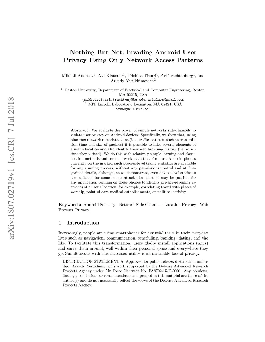 Nothing But Net: Invading Android User Privacy Using Only Network Access