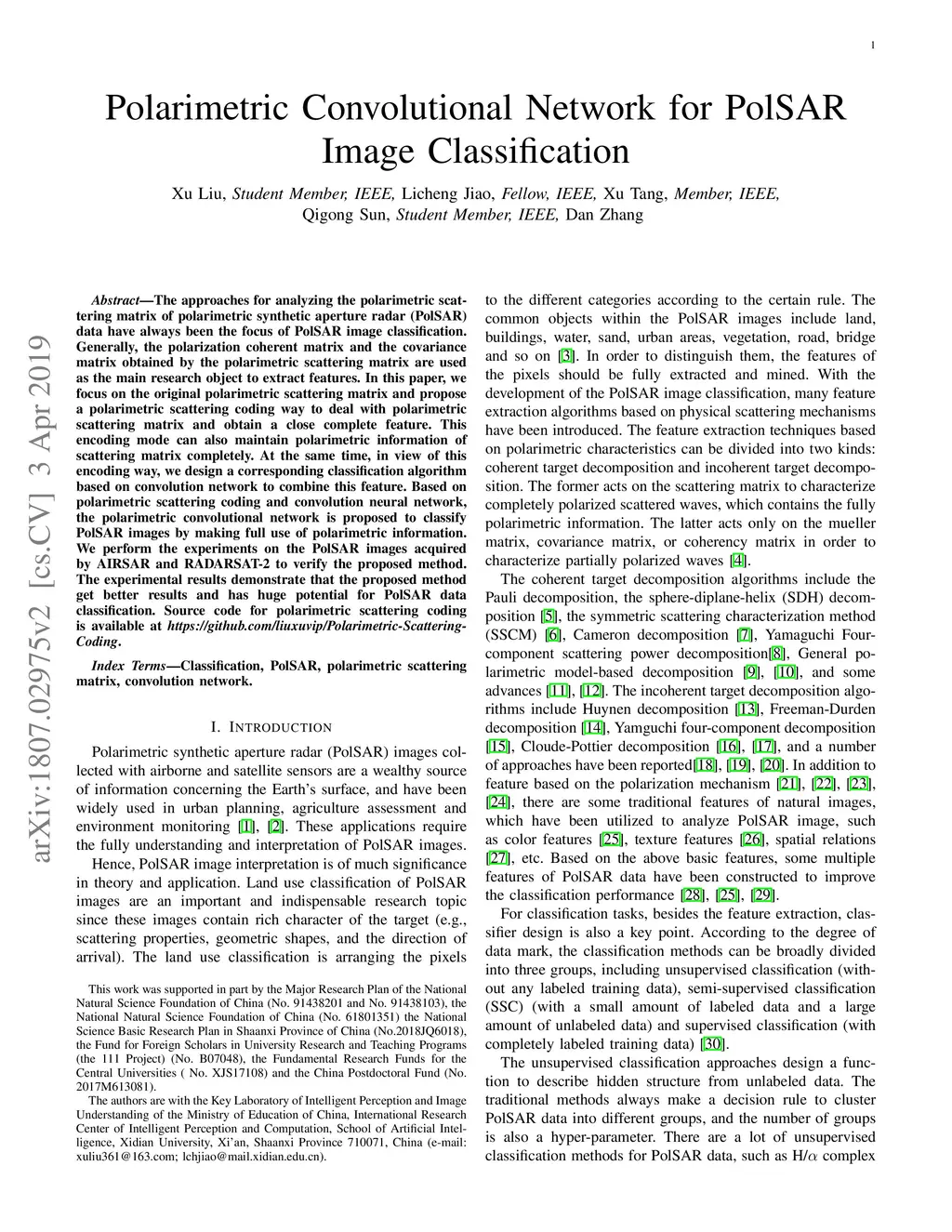 Polarimetric Convolutional Network for PolSAR Image Classification