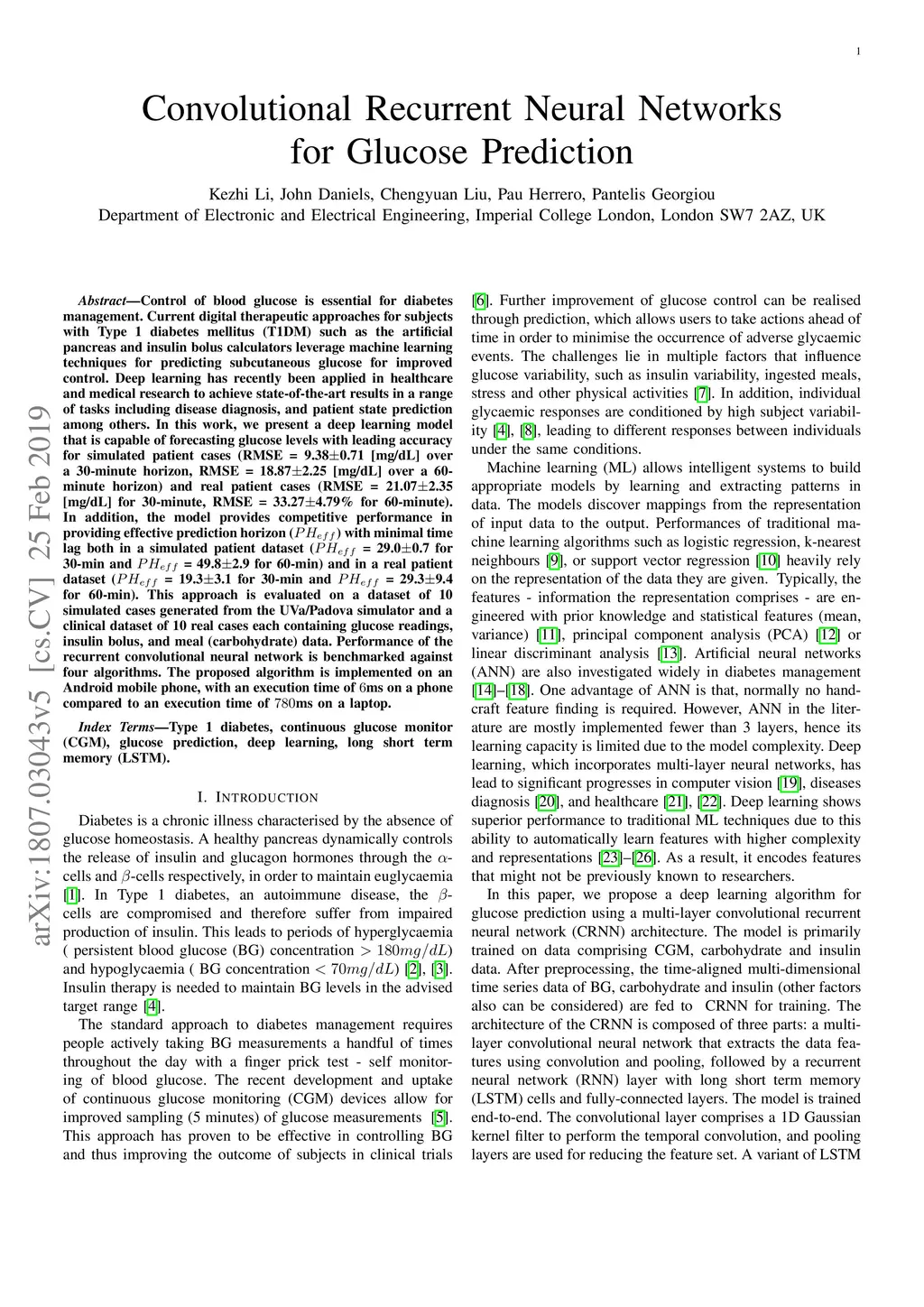 Convolutional Recurrent Neural Networks for Glucose Prediction