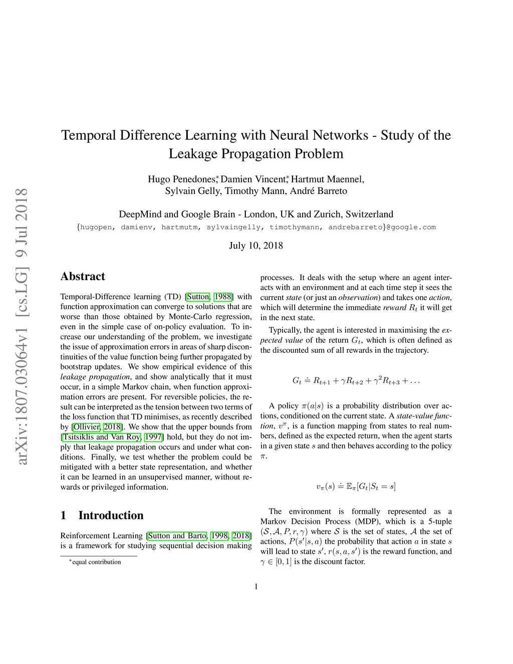Temporal Difference Learning with Neural Networks - Study of the Leakage