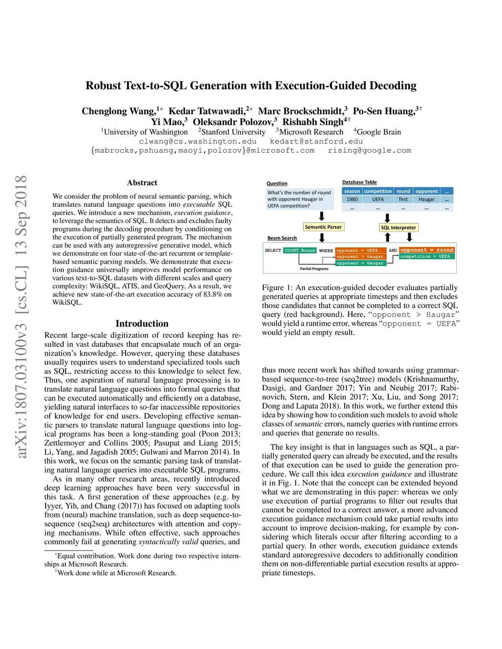 Robust Text-to-SQL Generation with Execution-Guided Decoding