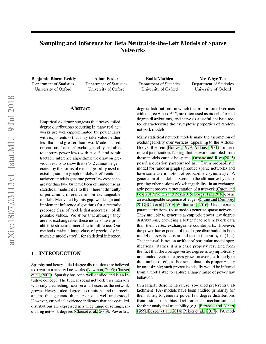 Empirical evidence suggests that heavy-tailed degree distributions occurring in many real networks are well-approximated by power laws with exponents that may take values either less than and greater than two. Models based on various forms of exchangeability are able to capture power laws with , and admit tractable inference algorithms; we draw on previous results to show that cannot be generated by the forms of exchangeability used in existing random graph models. Preferential attachment models generate power law exponents greater than two, but have been of limited use as statistical models due to the inherent difficulty of performing inference in non-exchangeable models. Motivated by this gap, we design and implement inference algorithms for a recently proposed class of models that generates of all possible values. We show that although they are not exchangeable, these models have probabilistic structure amenable to inference. Our methods make a large class of previously intractable models useful for statistical inference.
