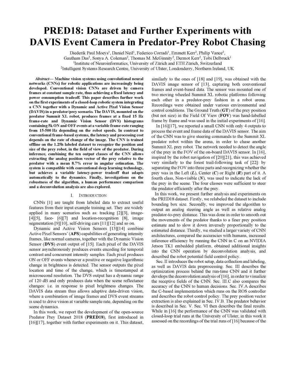 PRED18: Dataset and Further Experiments with DAVIS Event Camera in