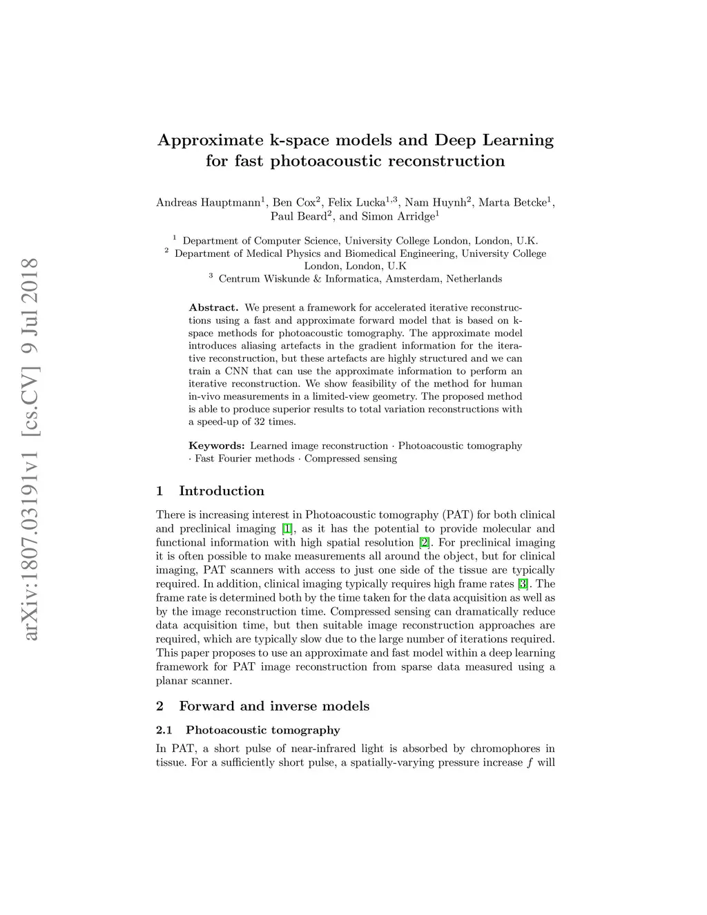Approximate k-space models and Deep Learning for fast photoacoustic