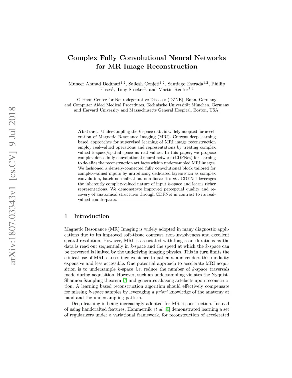 Complex Fully Convolutional Neural Networks for MR Image Reconstruction