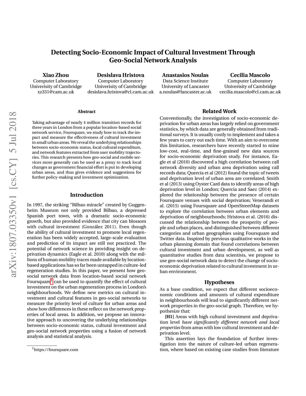 Taking advantage of nearly 4 million transition records for three years in London from a popular location-based social network service, Foursquare, we study how to track the impact and measure the effectiveness of cultural investment in small urban areas. We reveal the underlying relationships between socio-economic status, local cultural expenditure, and network features extracted from user mobility trajectories. This research presents how geo-social and mobile services more generally can be used as a proxy to track local changes as government financial effort is put in developing urban areas, and thus gives evidence and suggestions for further policy-making and investment optimization.