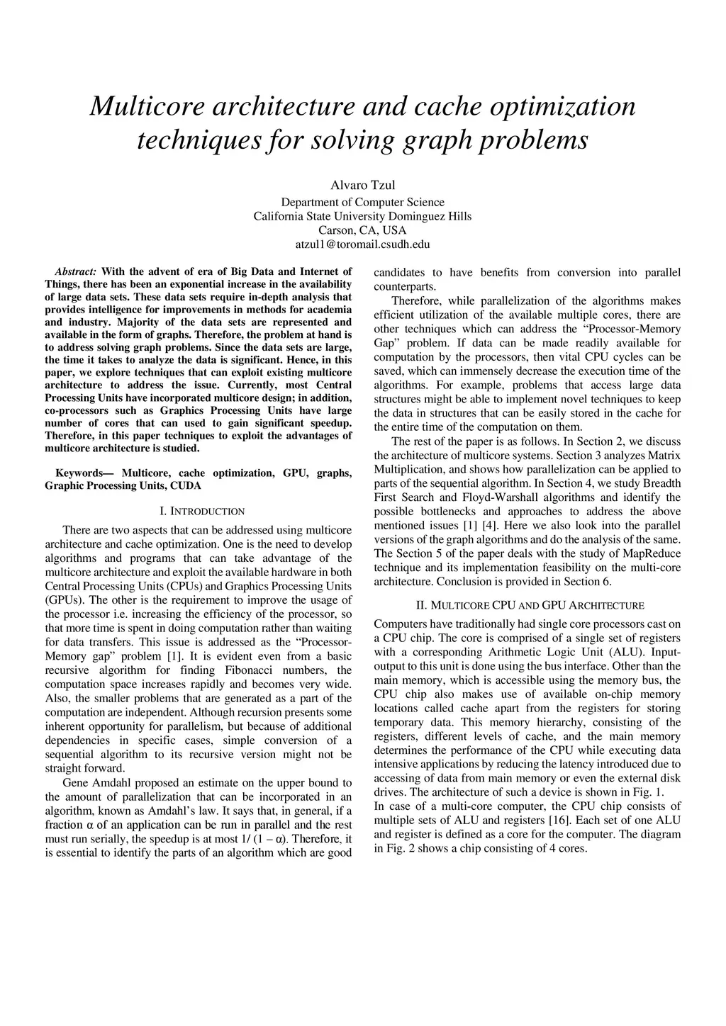 With the advent of era of Big Data and Internet of Things, there has been an exponential increase in the availability of large data sets. These data sets require in-depth analysis that provides intelligence for improvements in methods for academia and industry. Majority of the data sets are represented and available in the form of graphs. Therefore, the problem at hand is to address solving graph problems. Since the data sets are large, the time it takes to analyze the data is significant. Hence, in this paper, we explore techniques that can exploit existing multicore architecture to address the issue. Currently, most Central Processing Units have incorporated multicore design; in addition, co-processors such as Graphics Processing Units have large number of cores that can used to gain significant speedup. Therefore, in this paper techniques to exploit the advantages of multicore architecture is studied.