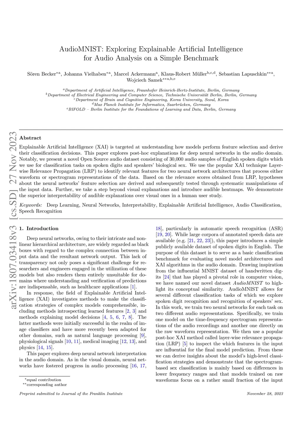 AudioMNIST: Exploring Explainable Artificial Intelligence for Audio