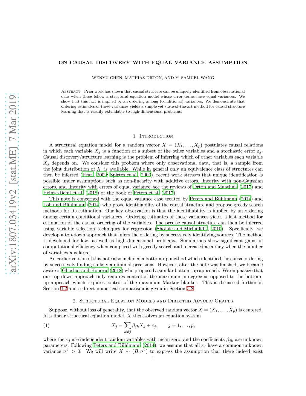 Prior work has shown that causal structure can be uniquely identified from observational data when these follow a structural equation model whose error terms have equal variances. We show that this fact is implied by an ordering among (conditional) variances. We demonstrate that ordering estimates of these variances yields a simple yet state-of-the-art method for causal structure learning that is readily extendable to high-dimensional problems.
