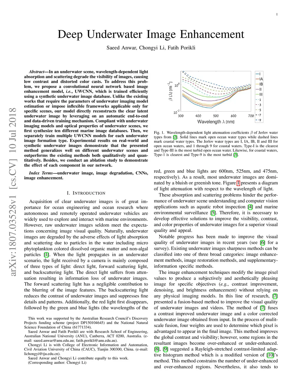 In an underwater scene, wavelength-dependent light absorption and scattering degrade the visibility of images, causing low contrast and distorted color casts. To address this problem, we propose a convolutional neural network based image enhancement model, i.e., UWCNN, which is trained efficiently using a synthetic underwater image database. Unlike the existing works that require the parameters of underwater imaging model estimation or impose inflexible frameworks applicable only for specific scenes, our model directly reconstructs the clear latent underwater image by leveraging on an automatic end-to-end and data-driven training mechanism. Compliant with underwater imaging models and optical properties of underwater scenes, we first synthesize ten different marine image databases. Then, we separately train multiple UWCNN models for each underwater image formation type. Experimental results on real-world and synthetic underwater images demonstrate that the presented method generalizes well on different underwater scenes and outperforms the existing methods both qualitatively and quantitatively. Besides, we conduct an ablation study to demonstrate the effect of each component in our network.