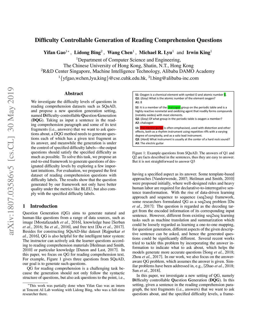 Difficulty-controllable Question Generation for Reading Comprehension