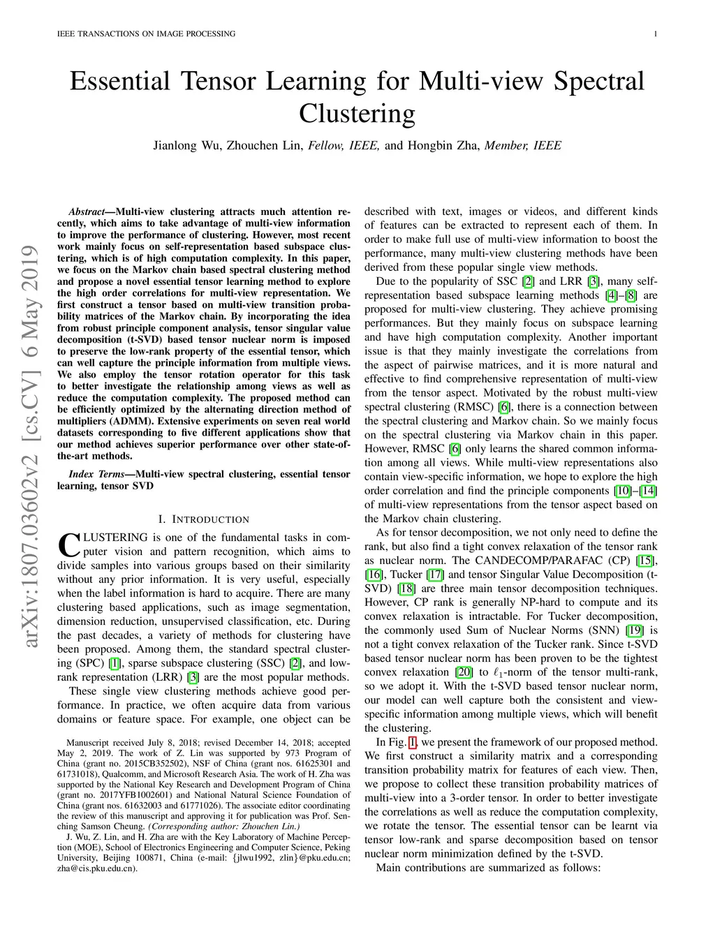 Essential Tensor Learning for Multi-view Spectral Clustering