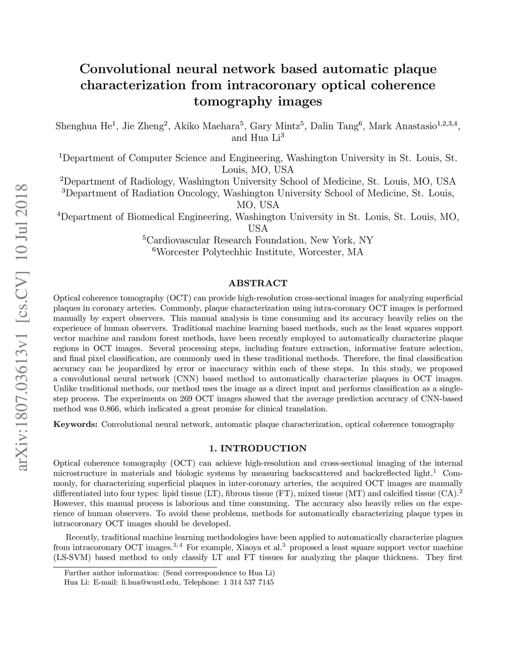 Convolutional neural network based automatic plaque characterization