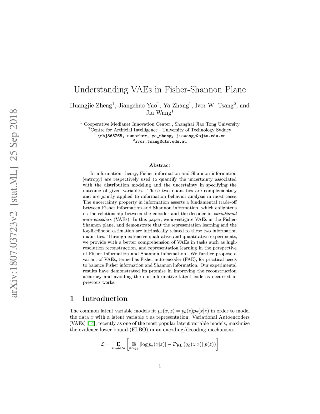 In information theory, Fisher information and Shannon information (entropy) are respectively used to quantify the uncertainty associated with the distribution modeling and the uncertainty in specifying the outcome of given variables. These two quantities are complementary and are jointly applied to information behavior analysis in most cases. The uncertainty property in information asserts a fundamental trade-off between Fisher information and Shannon information, which enlightens us the relationship between the encoder and the decoder in variational auto-encoders (VAEs). In this paper, we investigate VAEs in the Fisher-Shannon plane and demonstrate that the representation learning and the log-likelihood estimation are intrinsically related to these two information quantities. Through extensive qualitative and quantitative experiments, we provide with a better comprehension of VAEs in tasks such as high-resolution reconstruction, and representation learning in the perspective of Fisher information and Shannon information. We further propose a variant of VAEs, termed as Fisher auto-encoder (FAE), for practical needs to balance Fisher information and Shannon information. Our experimental results have demonstrated its promise in improving the reconstruction accuracy and avoiding the non-informative latent code as occurred in previous works.