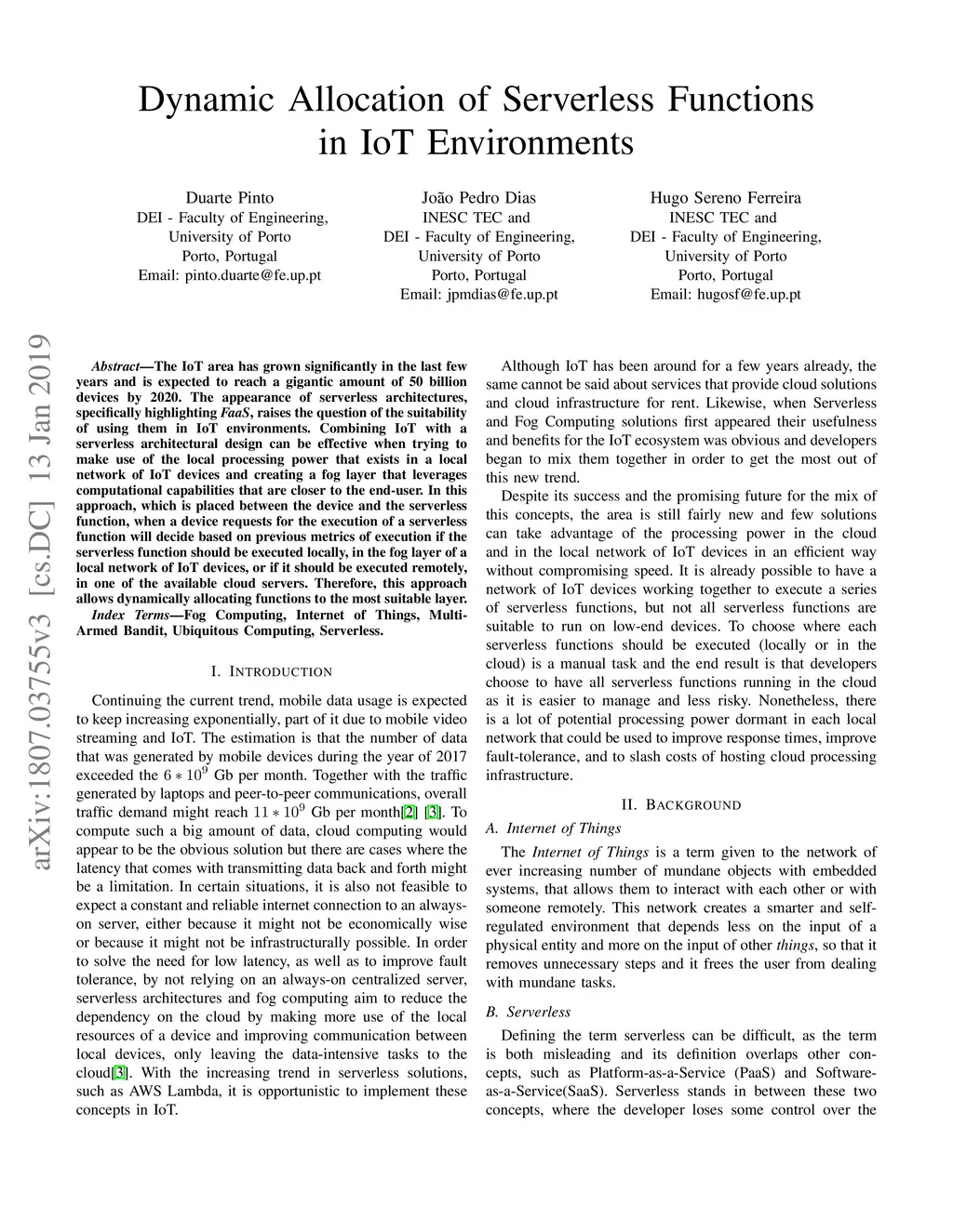 Dynamic Allocation of Serverless Functions in IoT Environments