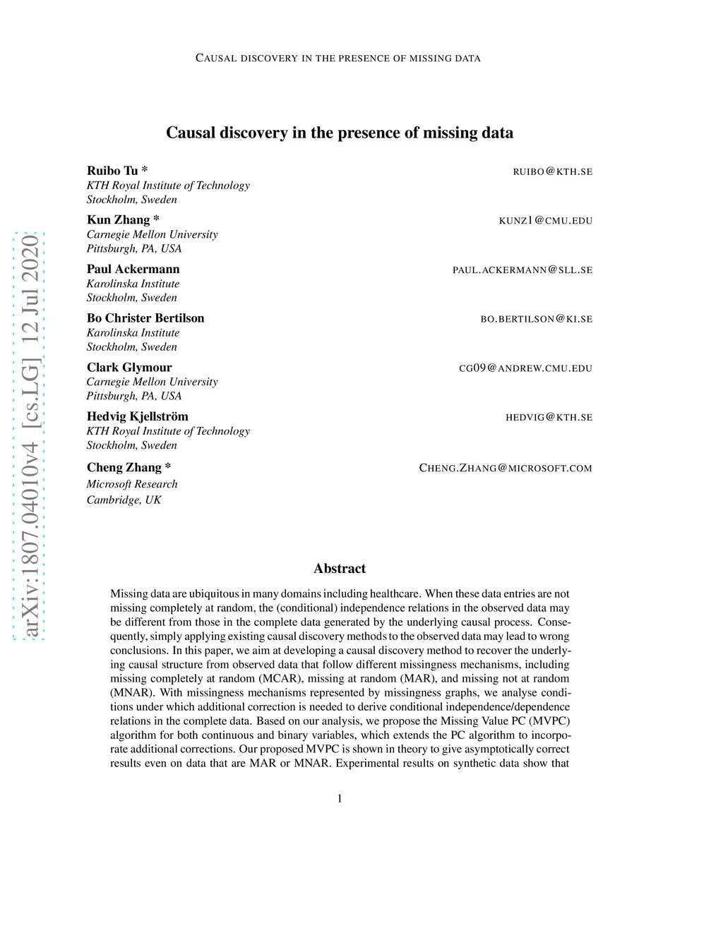 Causal discovery in the presence of missing data