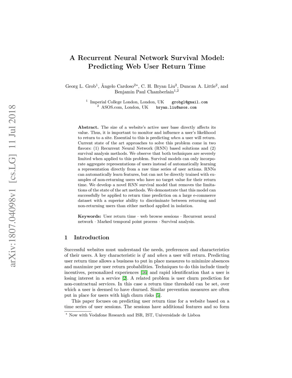 A Recurrent Neural Network Survival Model: Predicting Web User Return