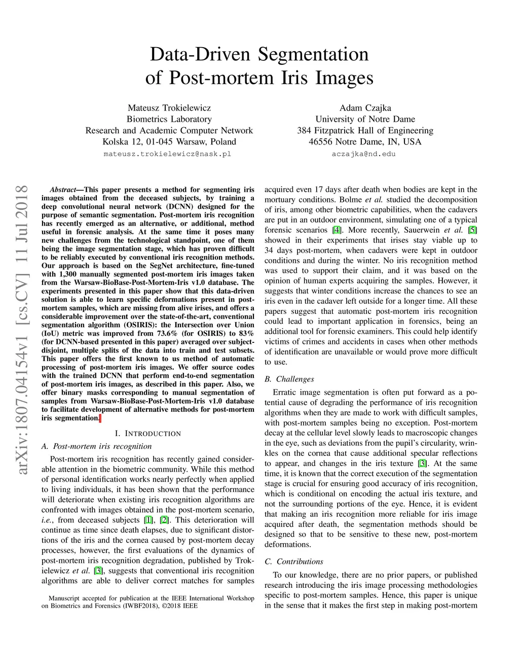 Data-Driven Segmentation of Post-mortem Iris Images