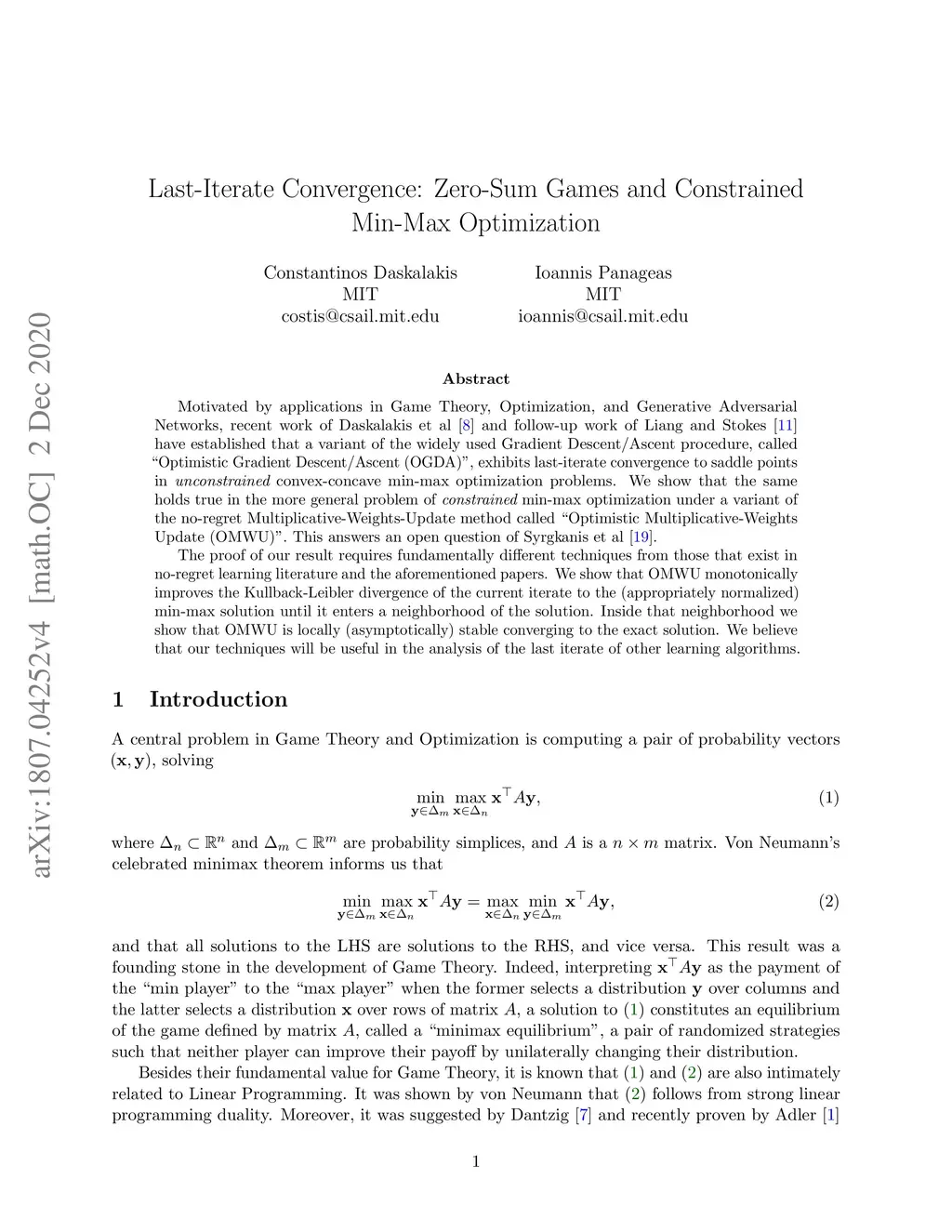 Last-Iterate Convergence: Zero-Sum Games and Constrained Min-Max Optimization
