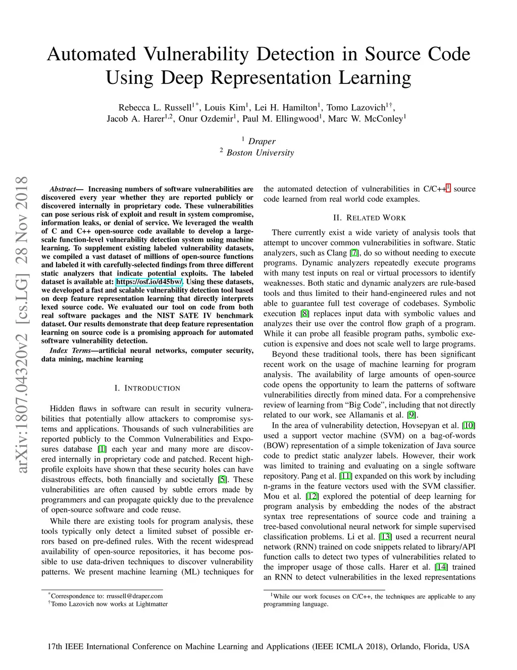 Automated Vulnerability Detection in Source Code Using Deep