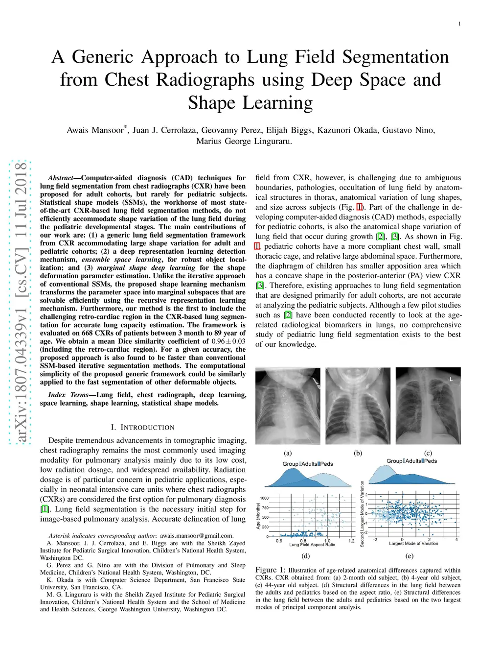 Computer-aided diagnosis (CAD) techniques for lung field segmentation from chest radiographs (CXR) have been proposed for adult cohorts, but rarely for pediatric subjects. Statistical shape models (SSMs), the workhorse of most state-of-the-art CXR-based lung field segmentation methods, do not efficiently accommodate shape variation of the lung field during the pediatric developmental stages. The main contributions of our work are: (1) a generic lung field segmentation framework from CXR accommodating large shape variation for adult and pediatric cohorts; (2) a deep representation learning detection mechanism, \emph{ensemble space learning}, for robust object localization; and (3) \emph{marginal shape deep learning} for the shape deformation parameter estimation. Unlike the iterative approach of conventional SSMs, the proposed shape learning mechanism transforms the parameter space into marginal subspaces that are solvable efficiently using the recursive representation learning mechanism. Furthermore, our method is the first to include the challenging retro-cardiac region in the CXR-based lung segmentation for accurate lung capacity estimation. The framework is evaluated on 668 CXRs of patients between 3 month to 89 year of age. We obtain a mean Dice similarity coefficient of (including the retro-cardiac region). For a given accuracy, the proposed approach is also found to be faster than conventional SSM-based iterative segmentation methods. The computational simplicity of the proposed generic framework could be similarly applied to the fast segmentation of other deformable objects.