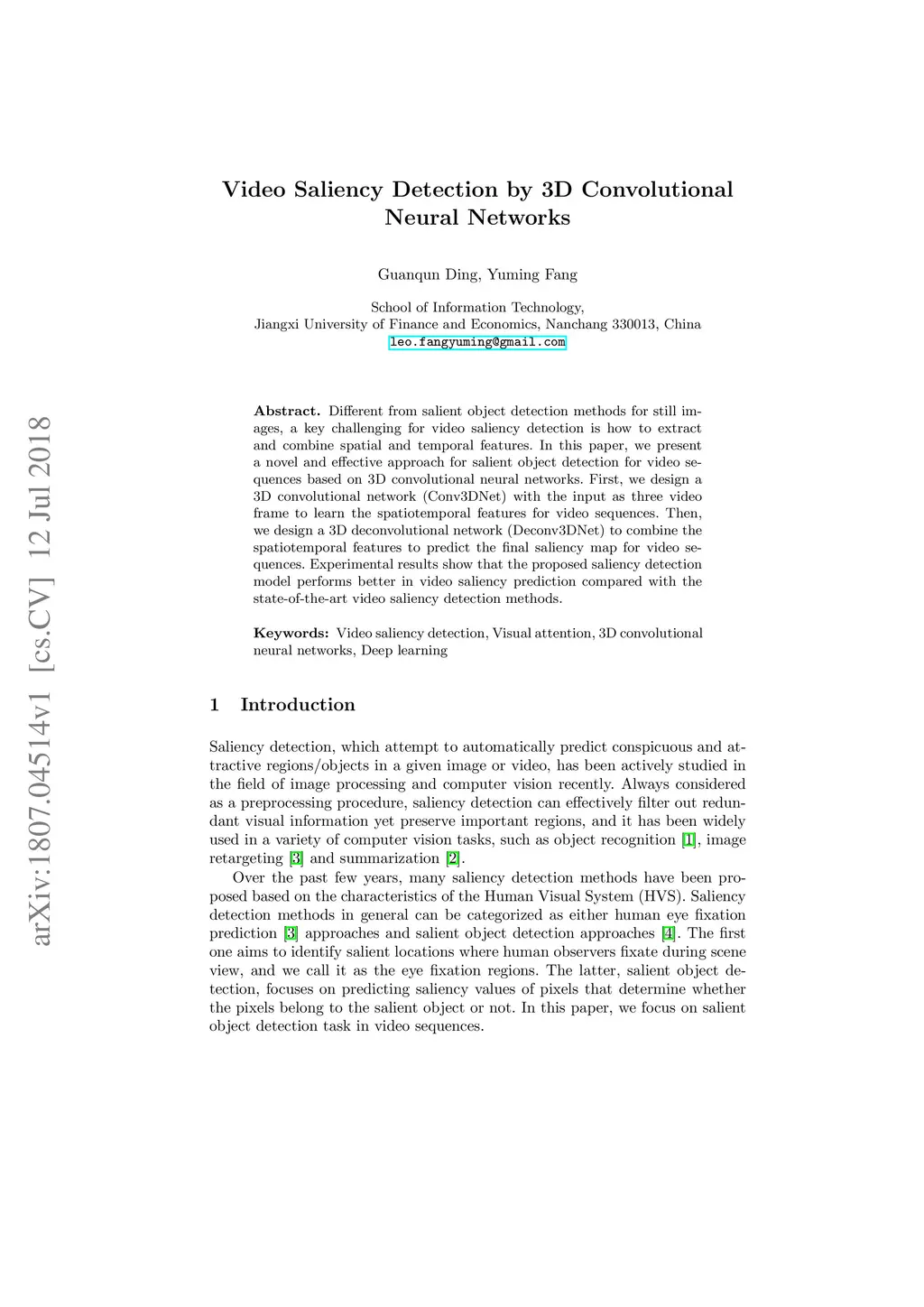 Video Saliency Detection by 3D Convolutional Neural Networks
