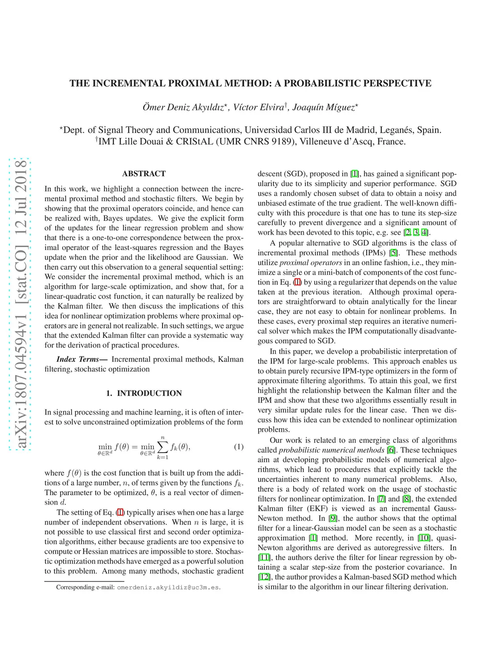 In this work, we highlight a connection between the incremental proximal method and stochastic filters. We begin by showing that the proximal operators coincide, and hence can be realized with, Bayes updates. We give the explicit form of the updates for the linear regression problem and show that there is a one-to-one correspondence between the proximal operator of the least-squares regression and the Bayes update when the prior and the likelihood are Gaussian. We then carry out this observation to a general sequential setting: We consider the incremental proximal method, which is an algorithm for large-scale optimization, and show that, for a linear-quadratic cost function, it can naturally be realized by the Kalman filter. We then discuss the implications of this idea for nonlinear optimization problems where proximal operators are in general not realizable. In such settings, we argue that the extended Kalman filter can provide a systematic way for the derivation of practical procedures.