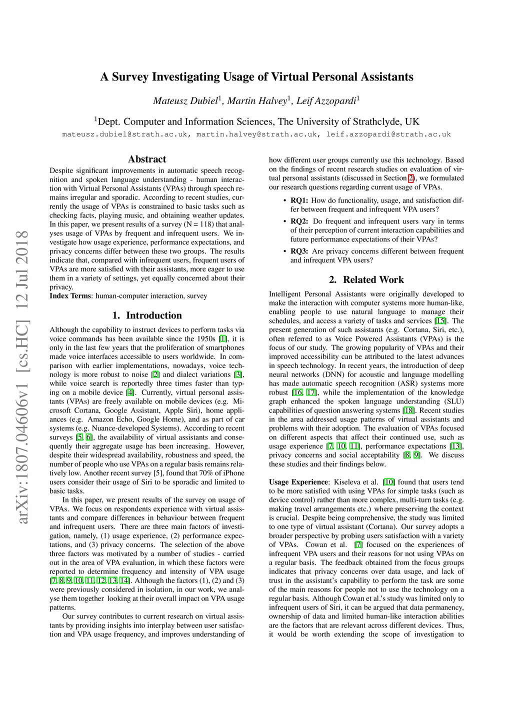 A Survey Investigating Usage of Virtual Personal Assistants