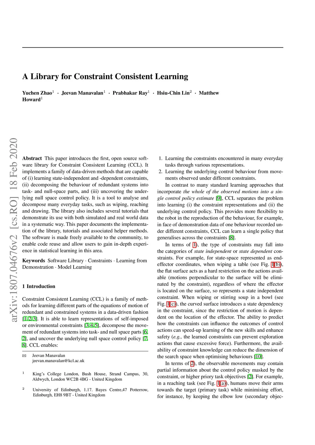 This paper introduces the first, open source software library for Constraint Consistent Learning (CCL). It implements a family of data-driven methods that are capable of (i) learning state-independent and -dependent constraints, (ii) decomposing the behaviour of redundant systems into task- and null-space parts, and (iii) uncovering the underlying null space control policy. It is a tool to analyse and decompose many everyday tasks, such as wiping, reaching and drawing. The library also includes several tutorials that demonstrate its use with both simulated and real world data in a systematic way. This paper documents the implementation of the library, tutorials and associated helper methods. The software is made freely available to the community, to enable code reuse and allow users to gain in-depth experience in statistical learning in this area.