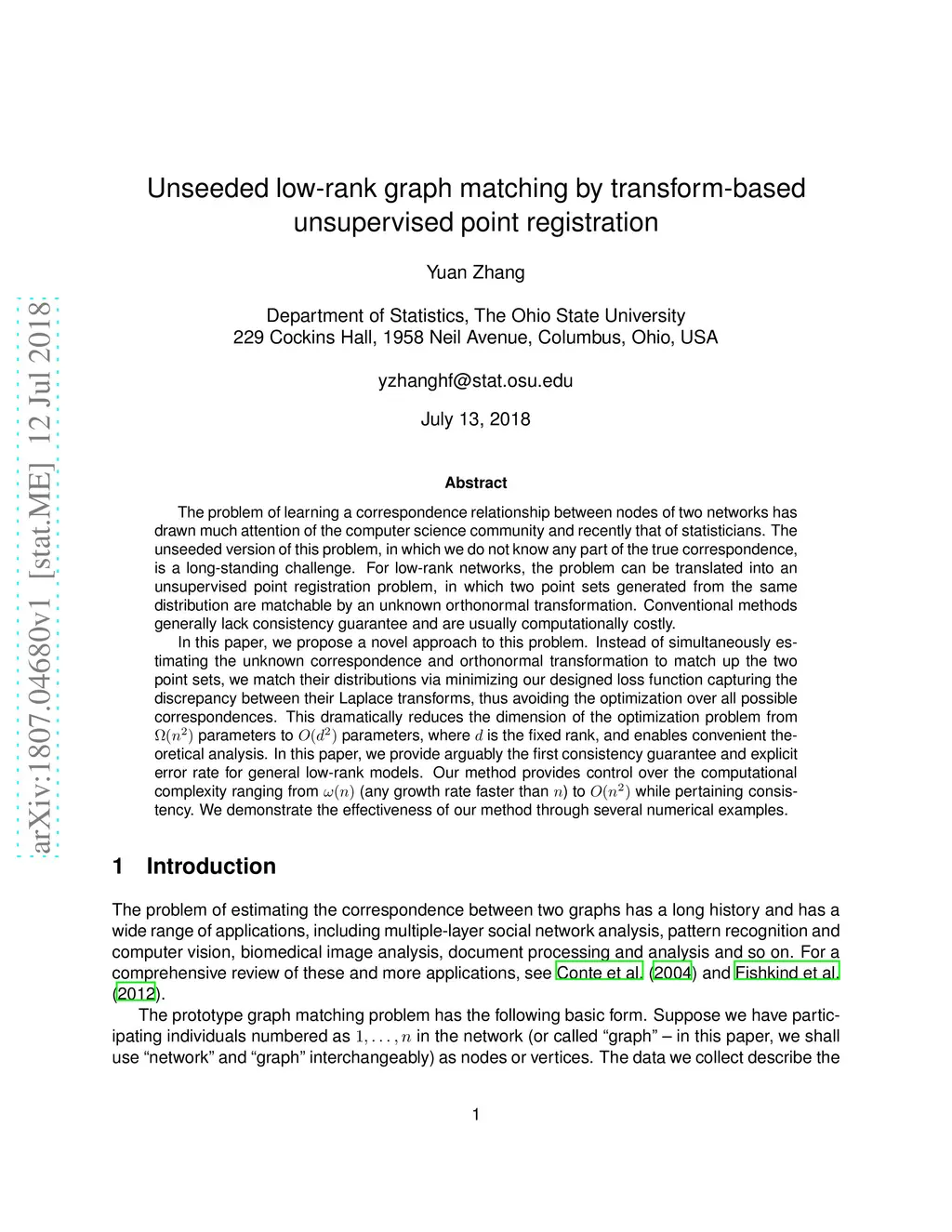 Unseeded low-rank graph matching by transform-based unsupervised point