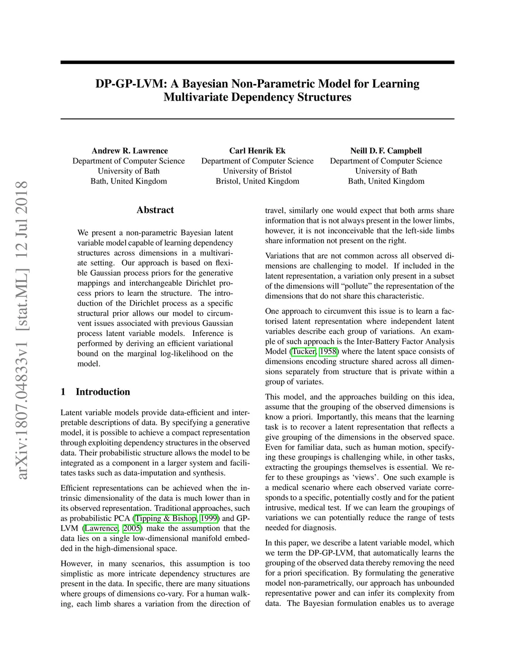 DP-GP-LVM: A Bayesian Non-Parametric Model for Learning Multivariate