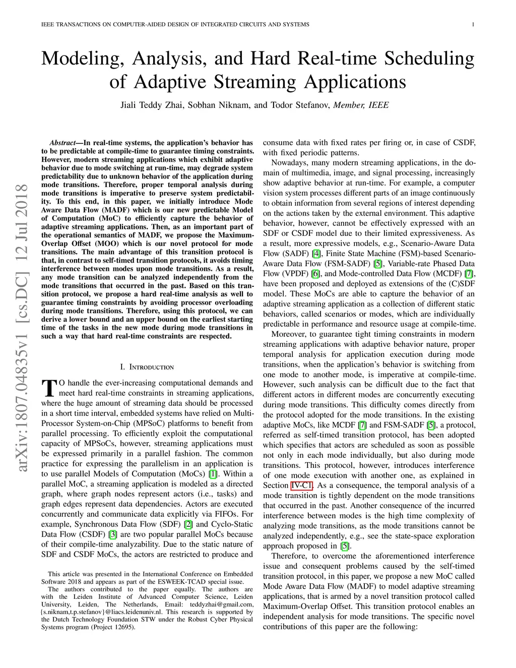 Modeling, Analysis, and Hard Real-time Scheduling of Adaptive Streaming