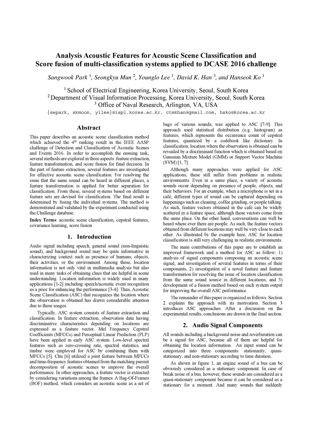 Analysis Acoustic Features for Acoustic Scene Classification and Score
