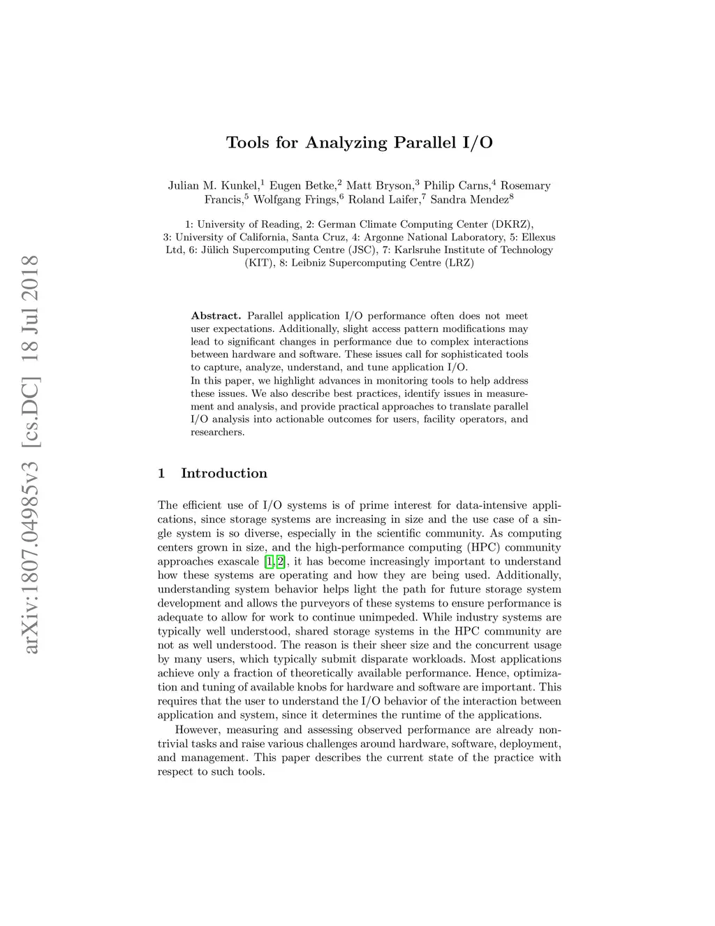 Tools for Analyzing Parallel I/O