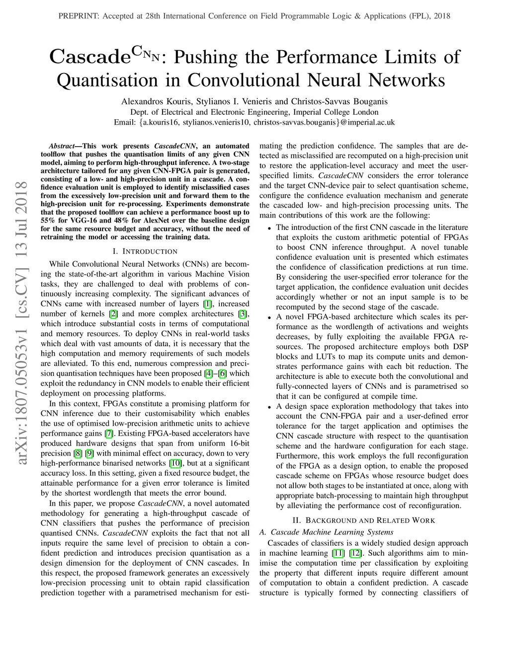 CascadeCNN: Pushing the Performance Limits of Quantisation in